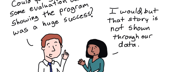 Summary: Evaluation maps really well to storytelling. Would it be easier if we just called ourselves story finders? I remember years ago sharing one of my evaluation cartoons with my mom. Her …